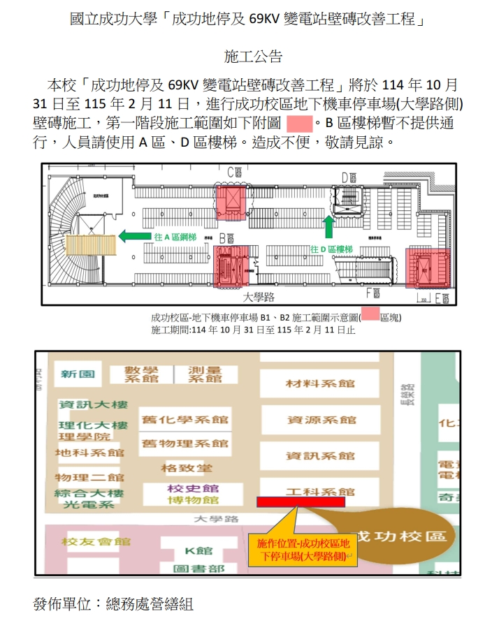 施工公告:「成功地停及69KV變電站壁磚改善工程」